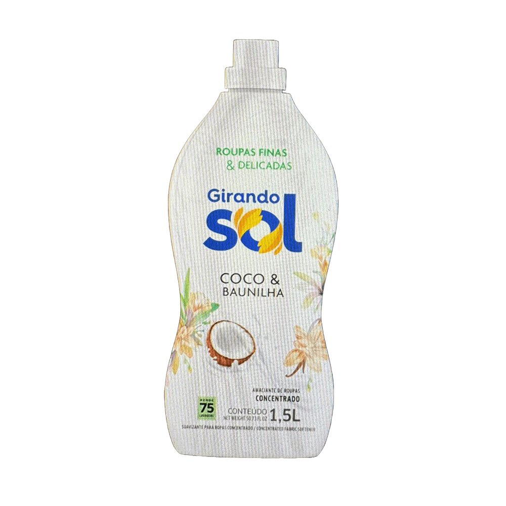 Amaciante Girando Sol Hipoalergênico: ideal para peles sensíveis, possui fórmula dermatologicamente testada que garante maciez, frescor e um perfume suave. Proporciona cuidado delicado às roupas, mantendo os tecidos protegidos e agradavelmente perfumados por mais tempo.
