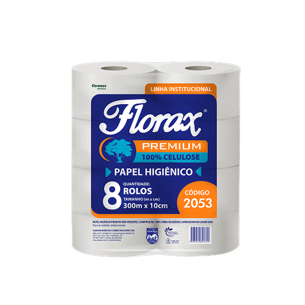 Papel Higiênico Rolão Florax 8×300 m: mais rendimento, maciez e resistência para ambientes de grande fluxo. Sustentável, econômico e ideal para uso institucional e comercial.
